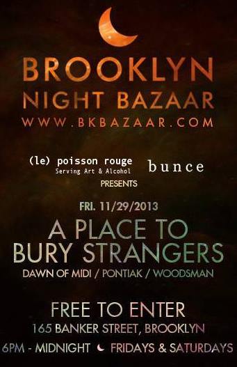 A Place To Bury Strangers, Dawn of Midi, Pontiak, Woodsman @ Brooklyn Night Bazaar 8pm (FREE!) I’m curious to see how people are going to