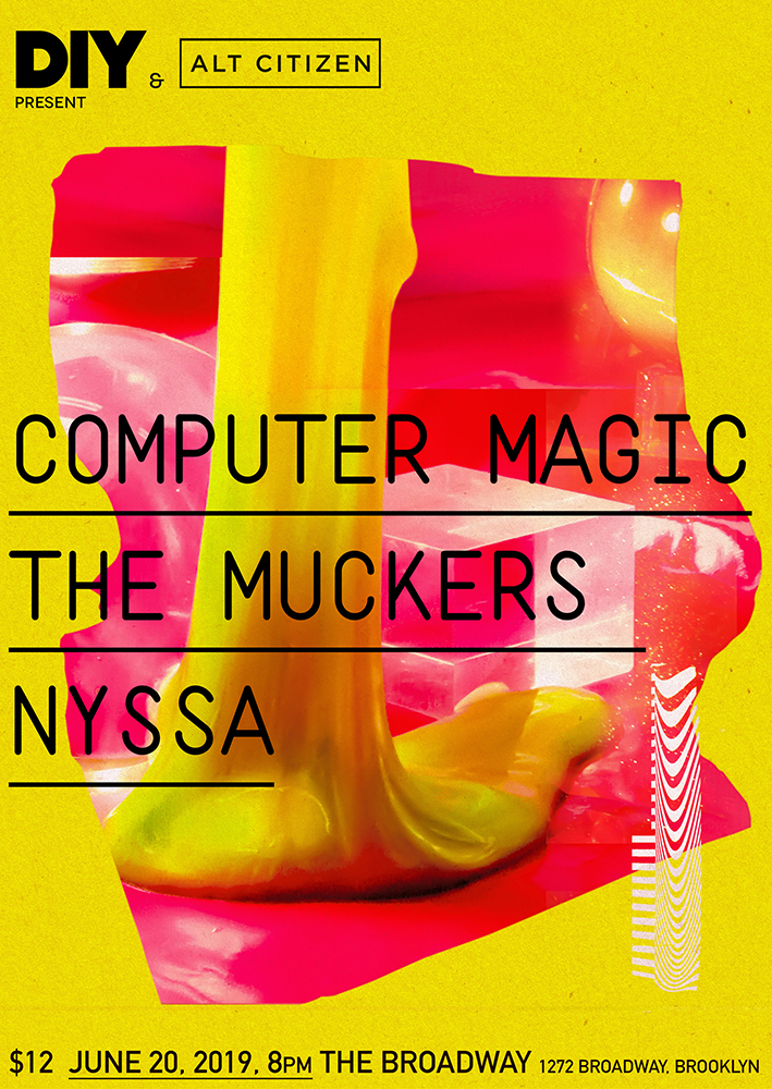 They say distance makes the heart grow fonder. Beyond stoked to announce that our friends across the pond at DIY Magazine and are partnering with us to co-host a series of gigs in NYC! Headlining the evening will be Computer Magic — a super special treat to see our fave sci-fi tinged synth-pop artist in such an intimate space. The Muckers will bring the rock and the groove and Nyssa will will get things going with her Madonna goes country goes warrior woman power-pop. It’s gonna be an unreal night, you don’t want to miss it.