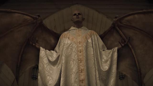 We find out in the third episode that Father Paul is actually Monsignor John made young and healthy again after an encounter with “an angel” on his trip to Jerusalem. Whether the angel is actually an angel or a demon is never explicitly said but the angel certainly bears a striking resemblance to a vampire. After meeting the vampire (it’s a vampire, let’s just call it what it is) Father John who is actively suffering from dementia at the time is drained of blood and then given the blood of the vampire which restores his youth and vitality. To him, having found this winged being with the ability to restore life in an ancient temple in Jerusalem, it can be nothing other than the work of God. And so he takes the vampire back to the island in order to share it with the rest of the community. He begins dosing the church goers unbeknownst to them by mixing the sacramental wine with the vampire blood. After his death and resurrection though, the sacrifice for the eternal life he is relying so heavily on becomes increasingly, disturbingly clear.