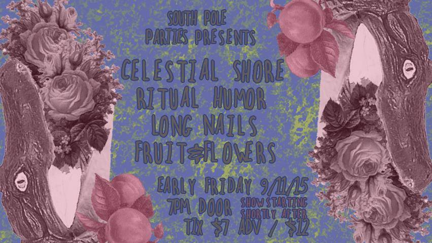 South Pole Parties is bringing a punchy lineup of lo-fi acts to Santos Party House tonight, including Celestial Shore, Ritual Humor, Long Nails, and Fruit