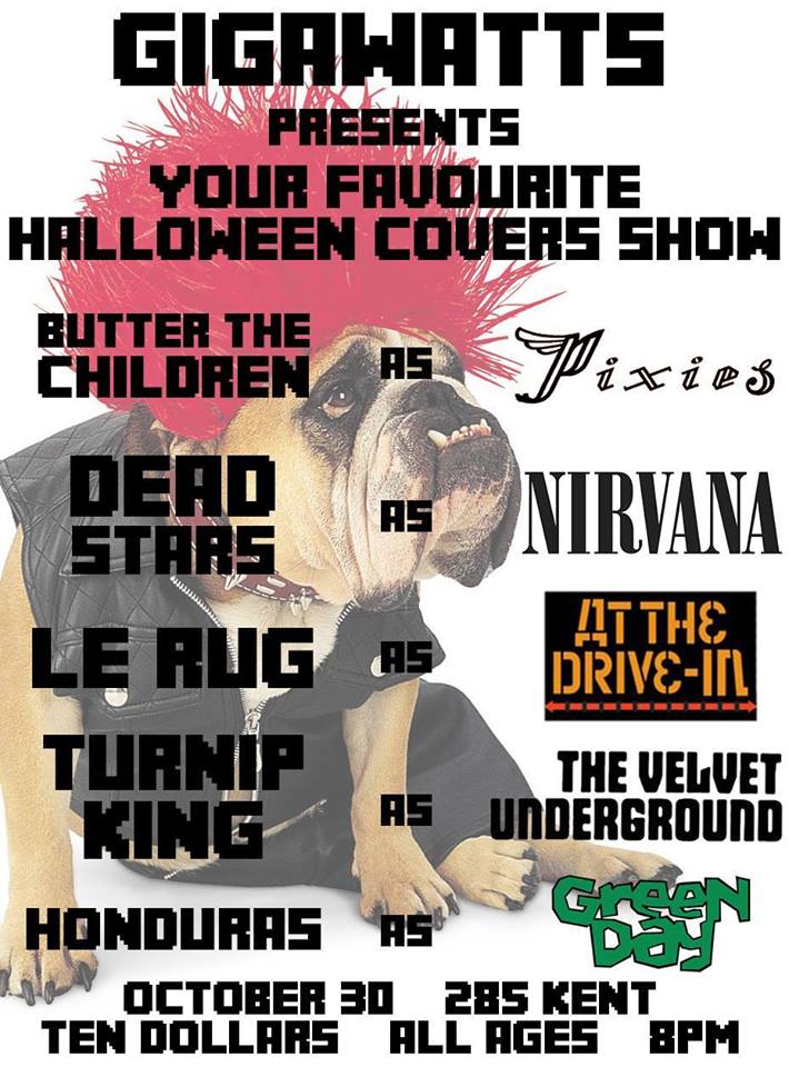 Your Favorite Halloween Covers Show @ 285 Kent 8pm ($10) Butter The Children play the Pixies, Dead Stars do Nirvana, Le Rug is At The