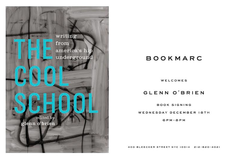 The Cool School @ BookMarc 6pm (FREE!) This “literary mixtape” compiled by GQ’s Glenn O’Brien includes writings by some of our favorite hip kids from