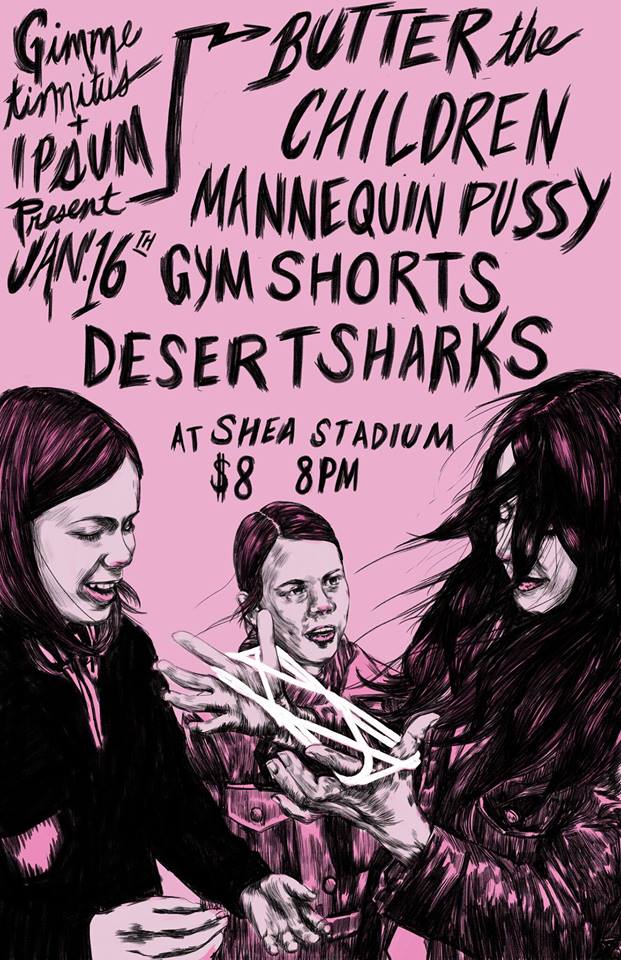 Butter The Children, Mannequin Pussy, Desert Sharks, Gym Shorts @ Shea Stadium 8pm ($8) We love Butter The Children. Now, when the fuck are they