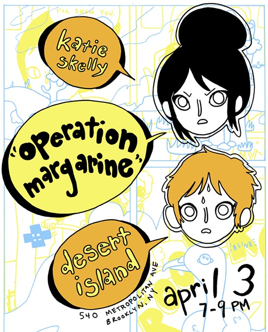 Katie Skelly’s “Operation Margarine” Book Release @ Desert Island 7pm (FREE!) Come celebrate the release of “Operation Margarine” and pick up a copy of Alt