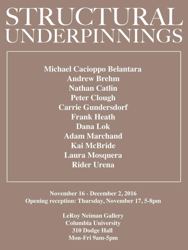 Head uptown tonight and check out Structural Underpinnings, an exhibition featuring new work by Columbia University School of the Arts staff. We’ve recently discovered Adam