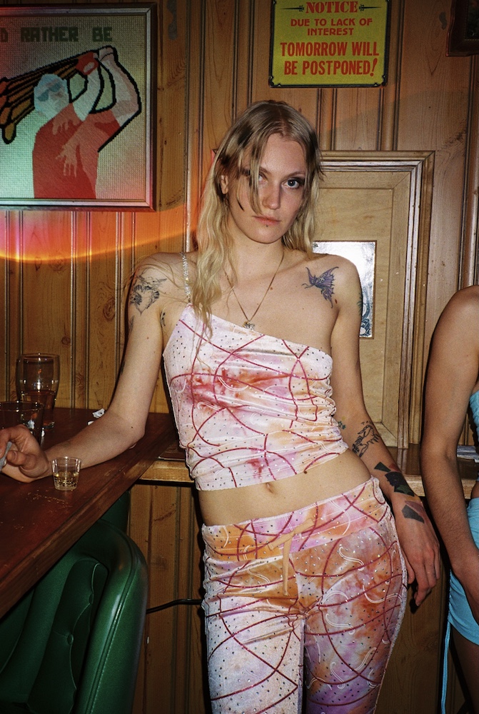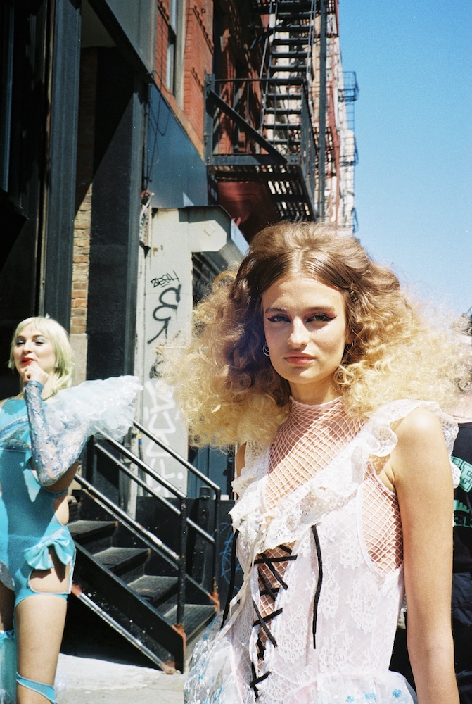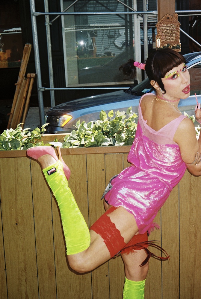There is nothing subtle about cumgirl8 — and that is where their beauty lies. From their costumed and choreographed performances to their upfront lyricism and confronting wall of sound, the band is here to make an entrance and make you pay attention. Today, the band is releasing their second EP RIPcumgirl8 on vinyl in partnership with DERO ARCADE in Australia and Raw Sugar Records in New Orleans. The translucent blue vinyl comes with an unreleased remix of their song “Bugs”, and extended version of “Pluck Me”, and a full color insert with lyrics and featured pieces from the band’s second fashion collection, CG8 2.0, that will be available in select stores next month.