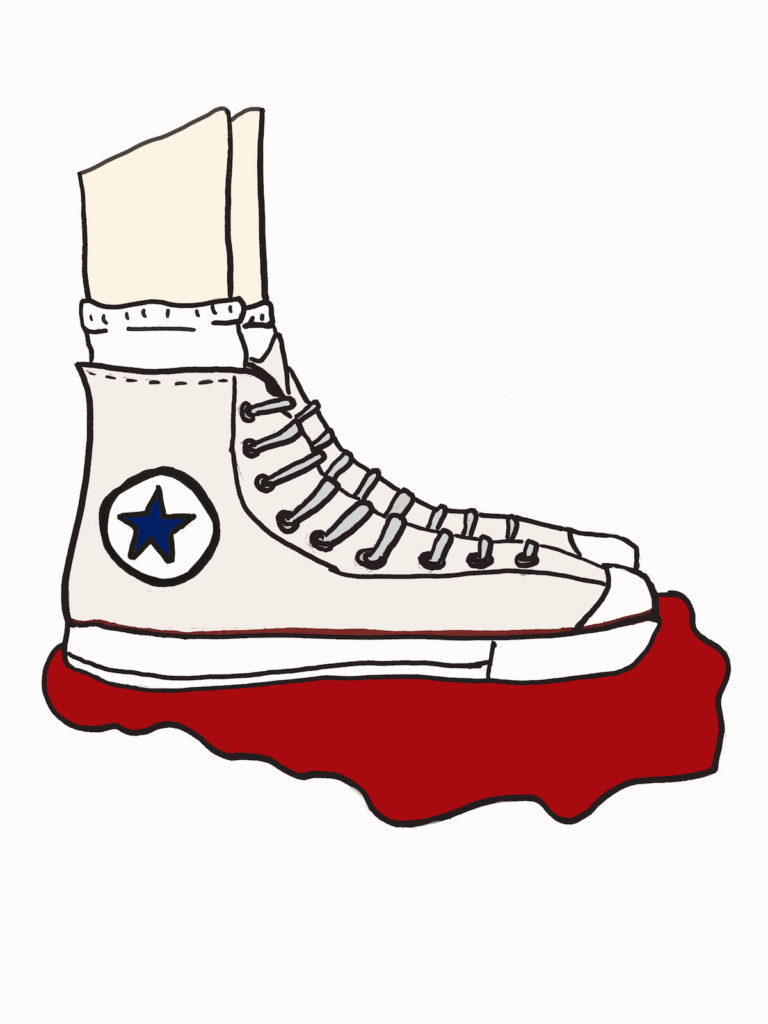 It only takes a moment after the blood from the dead body starts to stream out onto Julia’s already stained converse.