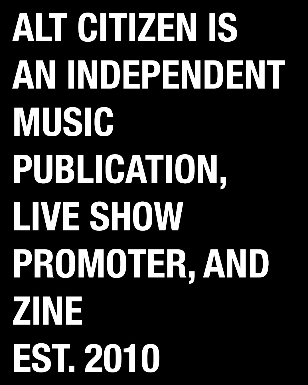Established in 2010, ALT CITIZEN’s roots stem from those of music journalism’s heyday – music discovery through tangible media, on-the-ground live show reports, authentic taste-making, au fait curation of bills, show roundups, and new music lists, amongst more – and continues to maintain its status as a clocker of legends and respected platform that understands music, shares good music, and supports the passion of musicians that we too are fueled by every day.