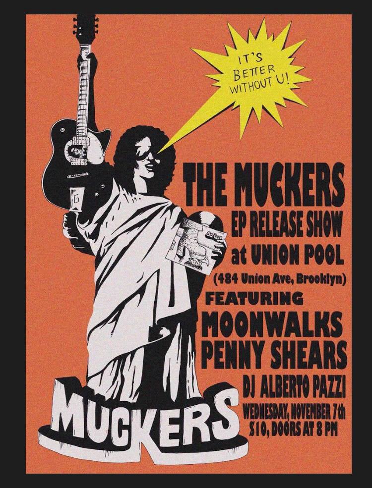 The Muckers are having their EP release party tomorrow night at Union Pool with Moonwalks, Penny Shears, and DJing by Alberto Pazzi. Rock n’ Roll at its best,