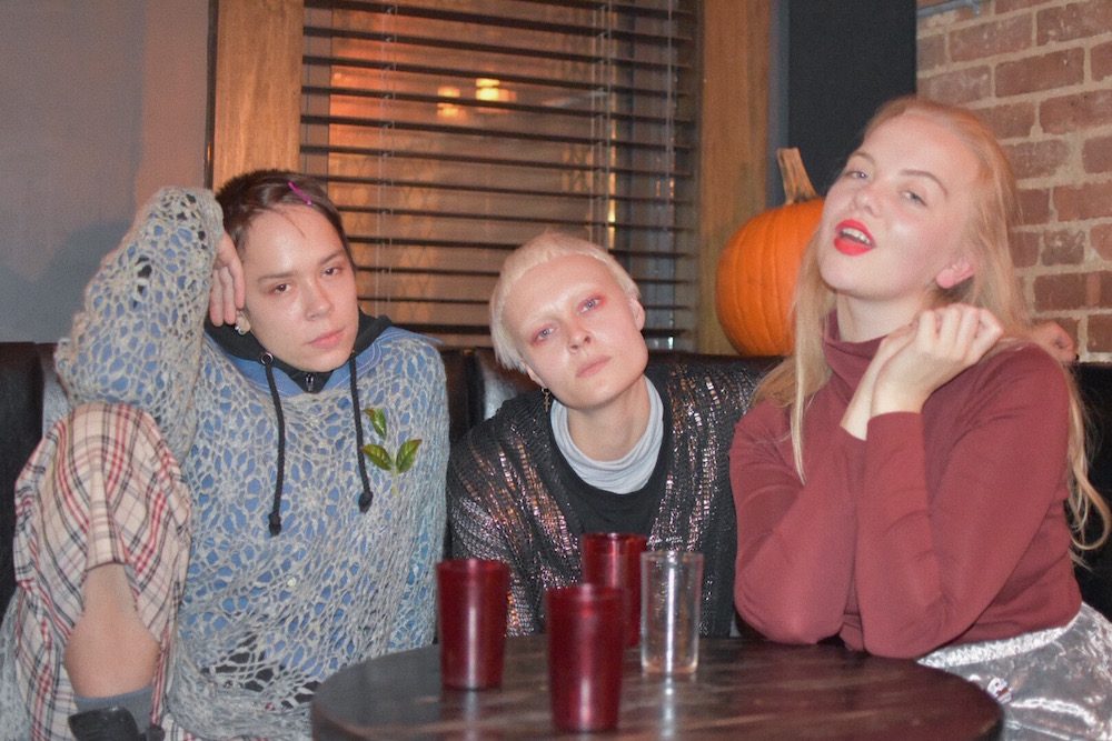 Photos by Sonya Mezhericher. The three members of Dream Wife, Rakel, Alice, and Bella sat huddled around a table in Williamsburg sharing pints of cider that