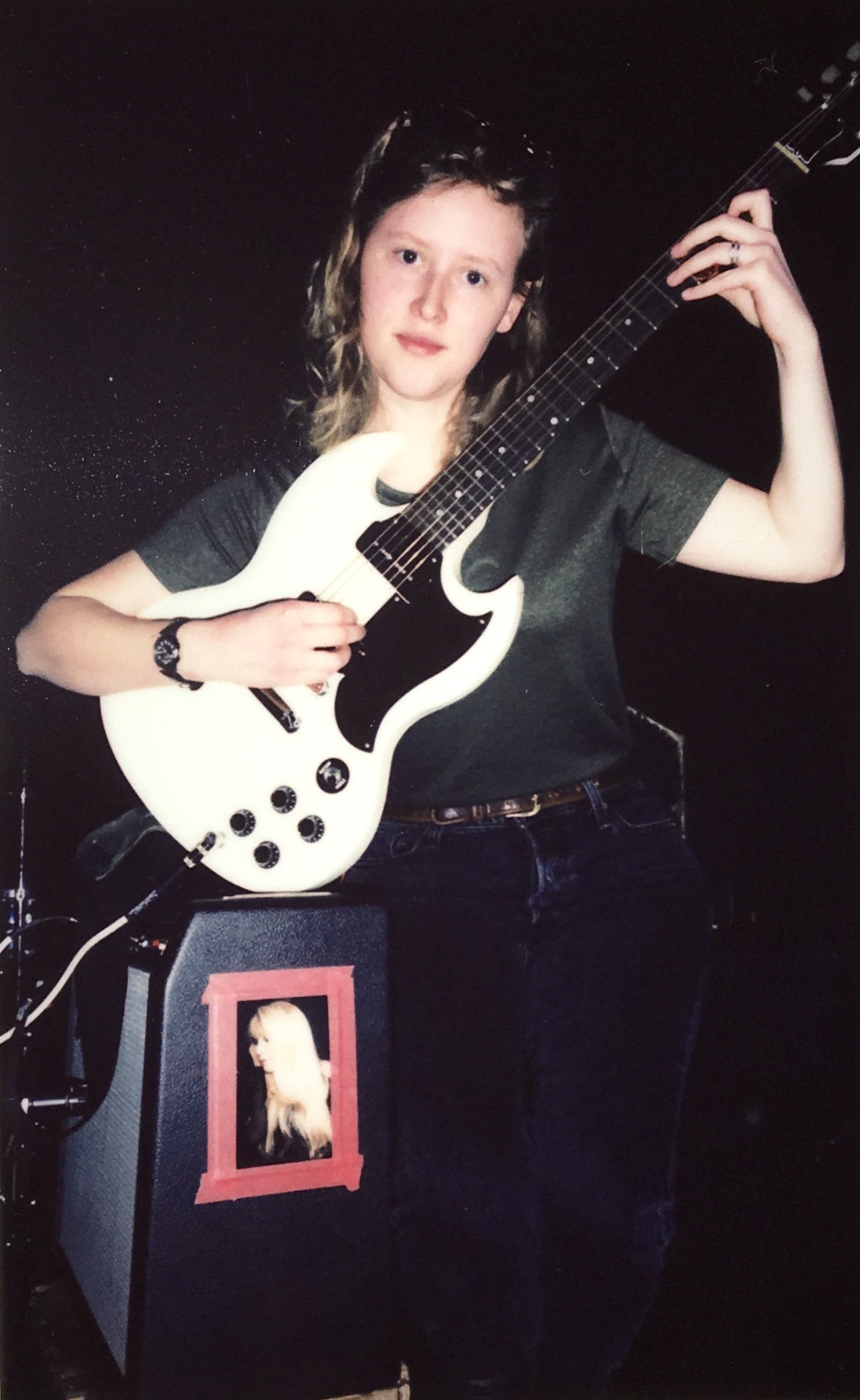 While Bad Bad Hats were getting ready for an early soundcheck, I loitered around an empty Music Hall of Williamsburg waiting to snap some polaroids. I noticed a postcard taped onto the side of Kerry’s amp, and since I refuse to wear my glasses it just looked like a blonde blob. After asking Kerry and finding out it’s Stevie Nicks, she came over to the edge of the stage to sit and chat. She’s super friendly and bubbly, but not in a way that could ever get old. Later in the night, she proved it with genuinely funny stage banter during which she compared her body to a Combo, “small and filled with pizza.”