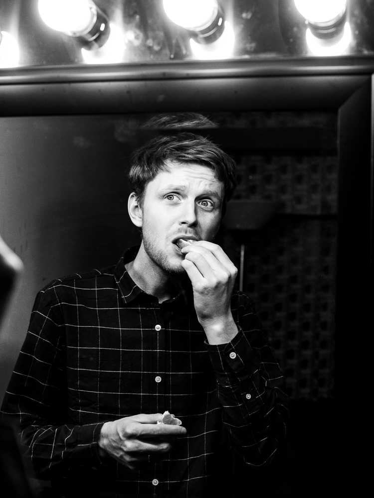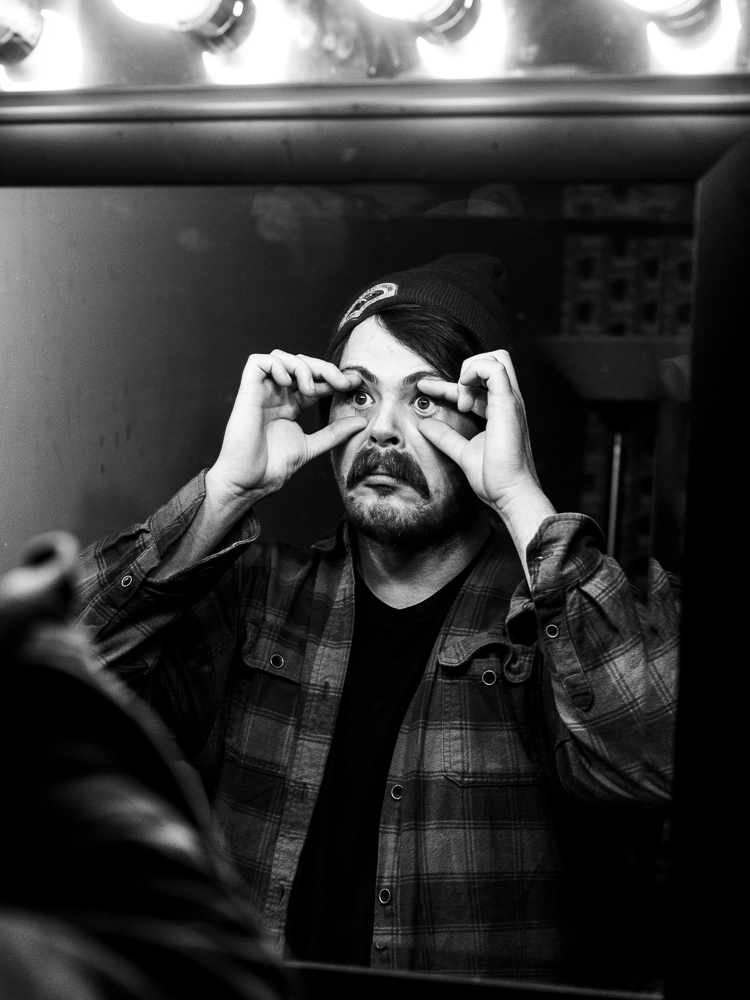 Taking portraits was easy. Con (drums) and Cooper (bass) were both happy to indulge a probably too-long photo session at the venue’s green room, and to take Jessica’s extensive but effective direction when they had a pizza dinner swiftly approaching. You can really get a feel for the type of band one is by the way they approach their portraits. Some are 90% show, some are goofy and aloof, some will have a staring contest with the camera to prove who’s toughest. These guys and gal didn’t overdo it but still turned on the star power when given the opportunity.