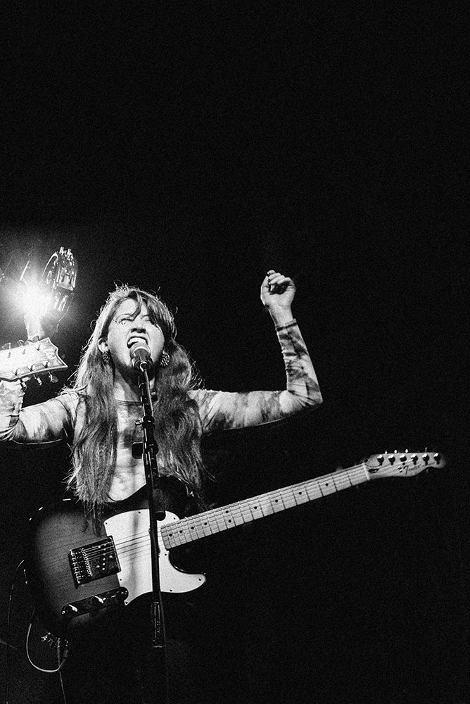 When the clock inched closer to 11:00, I watched Grace and Tess huddle together to whip up a setlist. Before heading to the stage, the whole band took a shot of what I can only assume was the cheapest whiskey available as they yelled in unison: “A real cowboy hat never falls off!” Charlie explained to me that this phrase was inspired by a memory of watching The Amazing Race with his family. It’s now taken on a new life as their rallying cry and the title of their next EP (out this Friday). A full length album is also currently in the works.