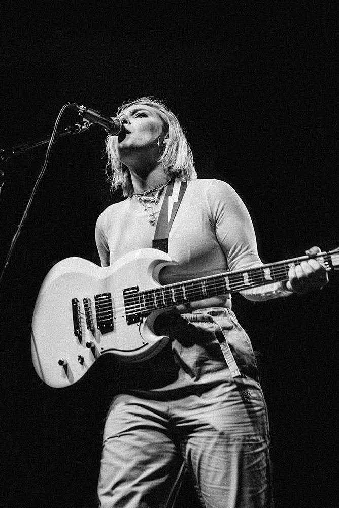 Ahead of their whiskey shot, at least half of the group apparently had plenty of time to stock up on extra liquid courage before stepping on stage. I had no idea while I watched them perform – I had switched to High Life early on to make sure I wasn’t too toasted to remember what happened, and the band’s vibe seemed as infectious and charismatic as ever. I only saw what I’ve always seen: Shybaby connecting with their audience like they all just happened to be a rad party together. Heck, even before Grace walked out into the crowd during “Skype Sex,” a small yet mighty mosh circle had formed in a swirl of good-natured aggression.