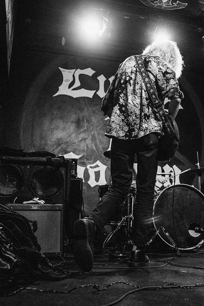 Much like that exchange, the evening remained unpredictable. I didn’t see the first couple of bands, but the group right before Shybaby included a three-piece brass section and matching tie dyed t-shirts. The bar itself, Lucky 13 Saloon, was a blend of goth regulars taking in the strippers on the bar and buttoned-up yuppier types who were clearly there to take in the spectacle of it all.