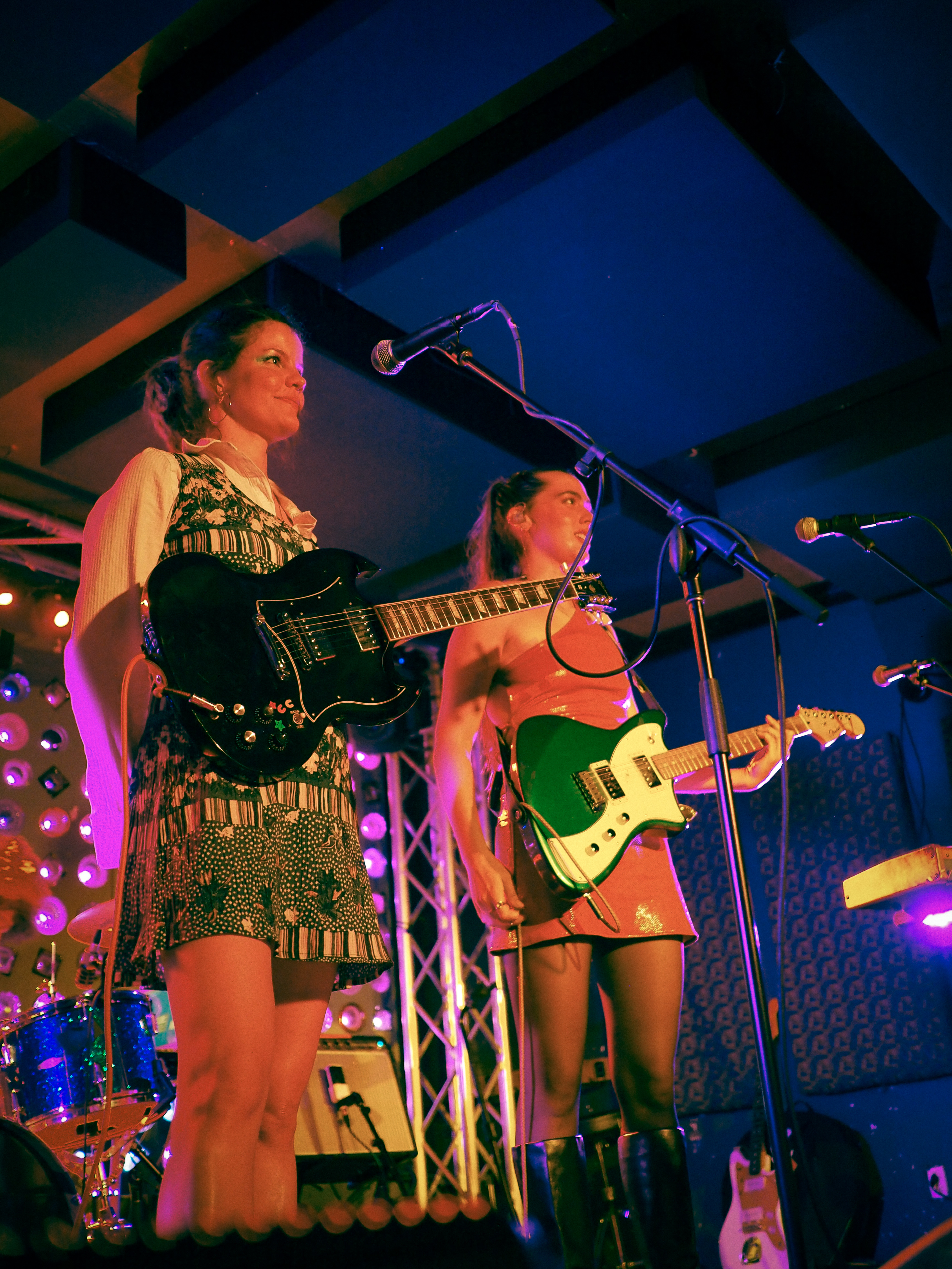 Last week, after a 15-show marathon at SXSW, Hinds jetted off to NYC to grace the stage with two sold-out performances at Baby’s All Right. Despite the long week in Texas, the band showed up with their unwavering energy and enthusiasm while in the city. Their trademark fervor, spark, and unrestrained musicality were palpable throughout. The city welcomed Ana and Carlotta eagerly, marking their return to New York after some time.