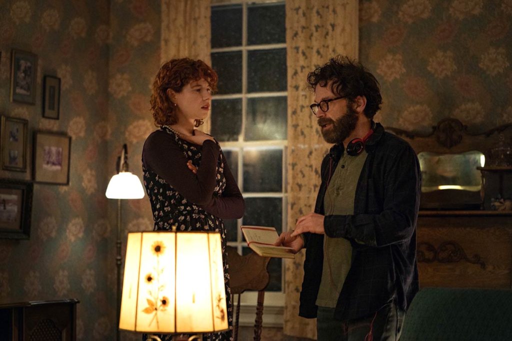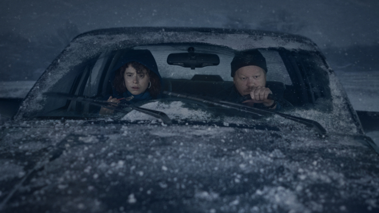 Kaufman draws out this scene to feel like the literal length of a car ride, pulled off brilliantly by the two leads, Jessie Buckley and Jesse Plemons, in Godot-like existential banter. Known to play skeezy loser characters, Plemons maximizes these qualities in his role as Jake, who I’d best describe as a David Foster Wallace obsessed incel. Buckley’s character — a woman with many names, professions, and passions — proves how deftly cultivated she is, simultaneously matching and patronizing Jake’s intellect with her own.