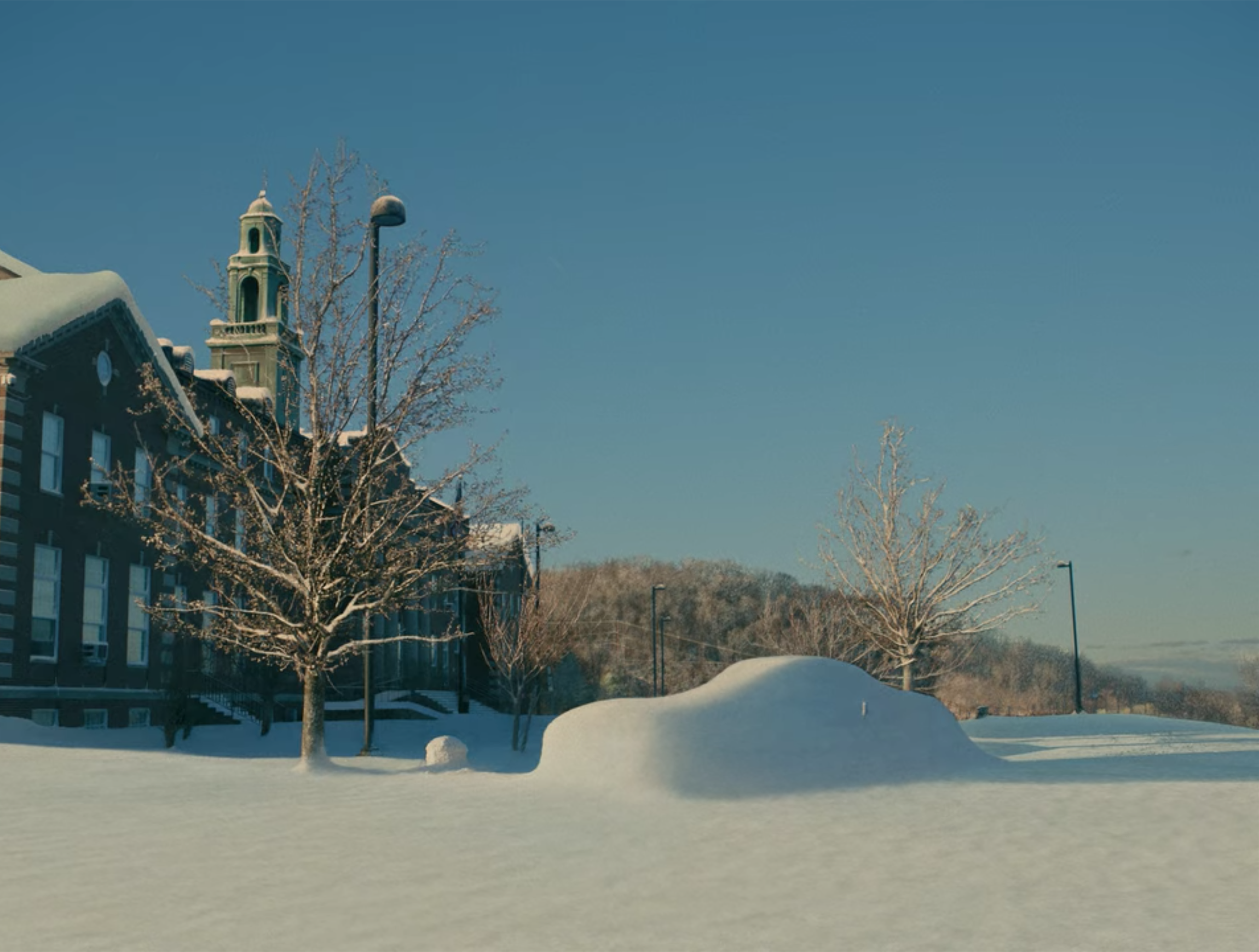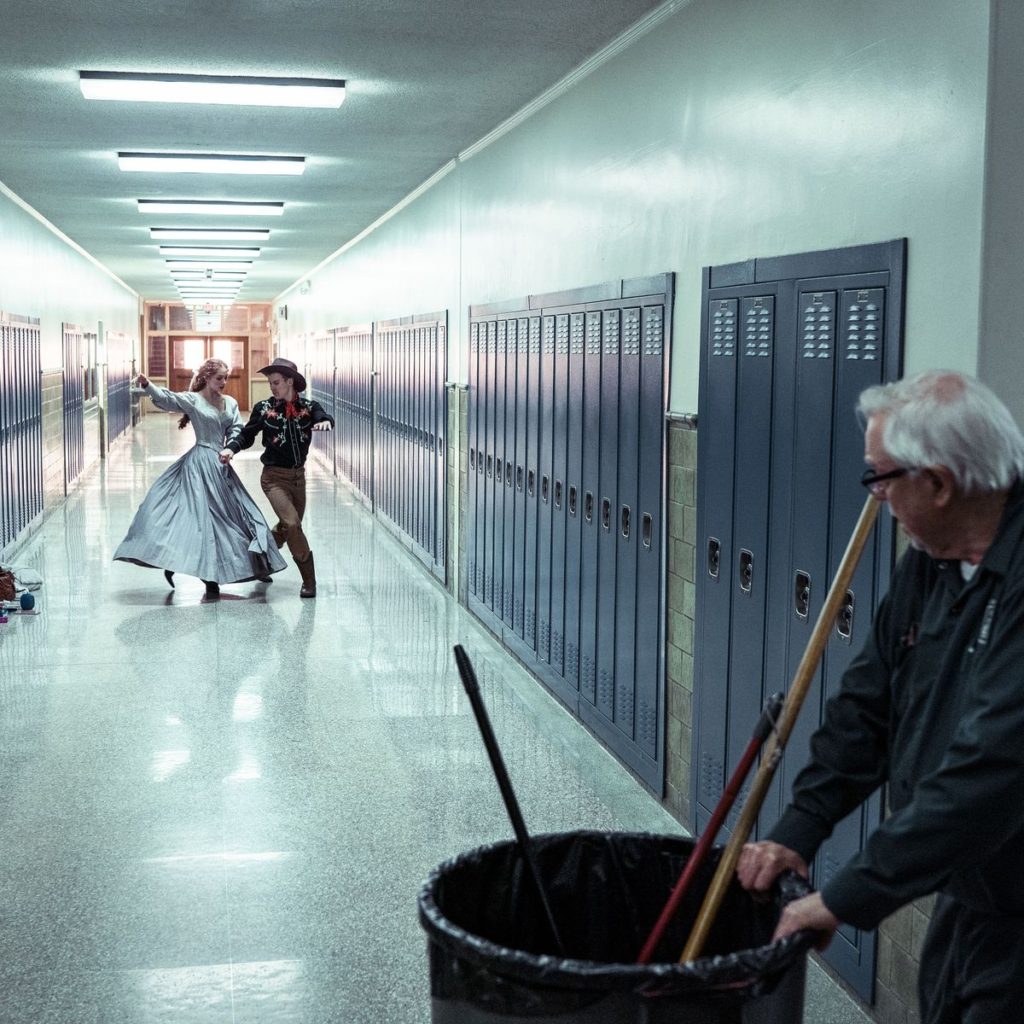 They depart. The car ride back is similar to the one prior, only the young woman seems to be more engaged and in control of the conversation. At one point she imitates Pauline Kael’s review of A Woman Under the Influence, cooly lighting a cigarette. There’s an off-putting visit to “Tulsey Town” — a Dairy Queen knock off which Kaufman admits is in the film because he couldn’t get the rights to use Dairy Queen. In the final act, the couple arrives at Jake’s old high school. Jake disappears and the young woman, Lucy/ Louisa/ Lucia/ Yvonne/ Ames, runs into the school janitor, the same one that we’ve briefly seen throughout the film. They share a warm embrace before the movie turns into a musical, culminating in an acceptance speech by Jake that’s oddly similar to the speech scene in A Beautiful Mind.