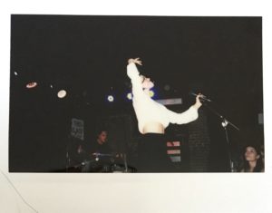 Even with air conditioner pumping, the amount of bodies in the space combined with the humidity pouring in from outside, the heat set the tone for the show. It only took a few songs for Meg to push her long flowing sleeves as far up her arm as possible, and for her hair, which was now halfway up in two little buns, to stick to her face in thick strands. She may be petite, but she leaves nothing to be wanted onstage. She’s very theatrical in her delivery, reaching her hands out to the crowd and up to the heavens when she’s not playing bass on a song. Her face is lit up with rage or heartbreak, and her voice is a powerful vehicle for her words. In between songs, though, she comes right back down to the tone she used to speak with me earlier, engaging in the crowd’s attempts to have a two-way banter sesh with a cool calm. Occasionally she’ll pace the stage, collecting herself before diving into the next song.