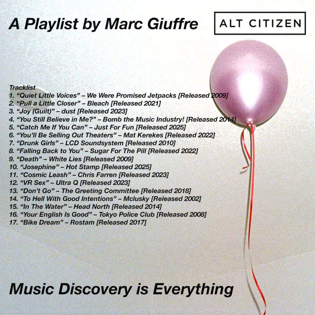 Photographer/finance bro/AC columnist/friend to many Marc Giuffre has provided our ears with an inside listen into his Long-Island-emo-bred music taste. If you follow anyone in the local indie music scene or adjacent on Instagram, you’ve likely seen a Marc Giraffe photograph. Perhaps the one of Doecaine reading on the subway, that one of Cab Ellis’ Connor Abeles on Bowery Ballroom show flyers splattered on the wheatpaste walls around the EV, or those at Baby’s backstage of The Dare or the PI.FYI squad spinning decks. The slightly hyperpigmented flicks, more often than not, capturing a blink-of-an-eye candidness, I can point out from a mile away. You’ll see him wearing his suit, still on from his corporate-ahh “real” job, at a show at 101, up in the front, snapping shots with a way-too-bright flash on his tiny, yet mighty handheld film Yashica T4.