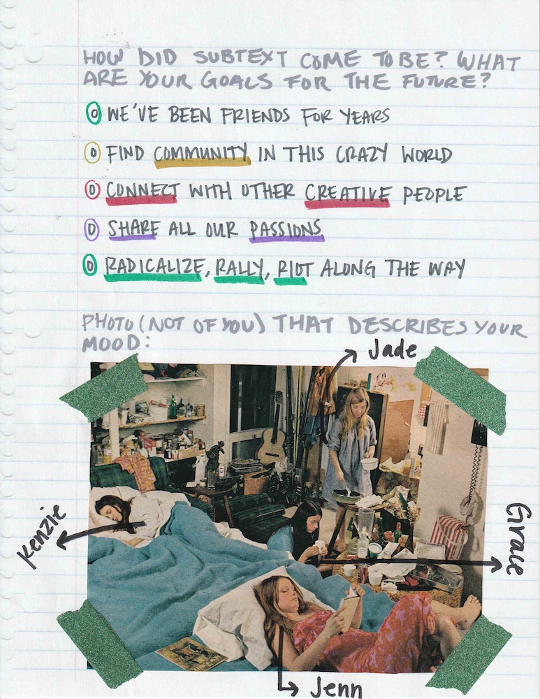 In true Subtext fashion, we sent some notes back and forth with an added collage element. You can check out our conversation below.