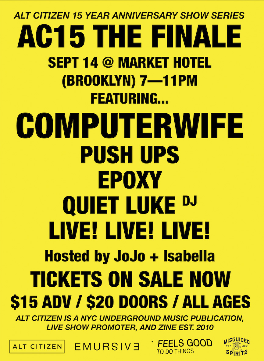 THE FINALE: September 14 featuring Computer Wife, Push Ups, Epoxy @ Market Hotel 🎟️ TICKETS ON SALE NOW