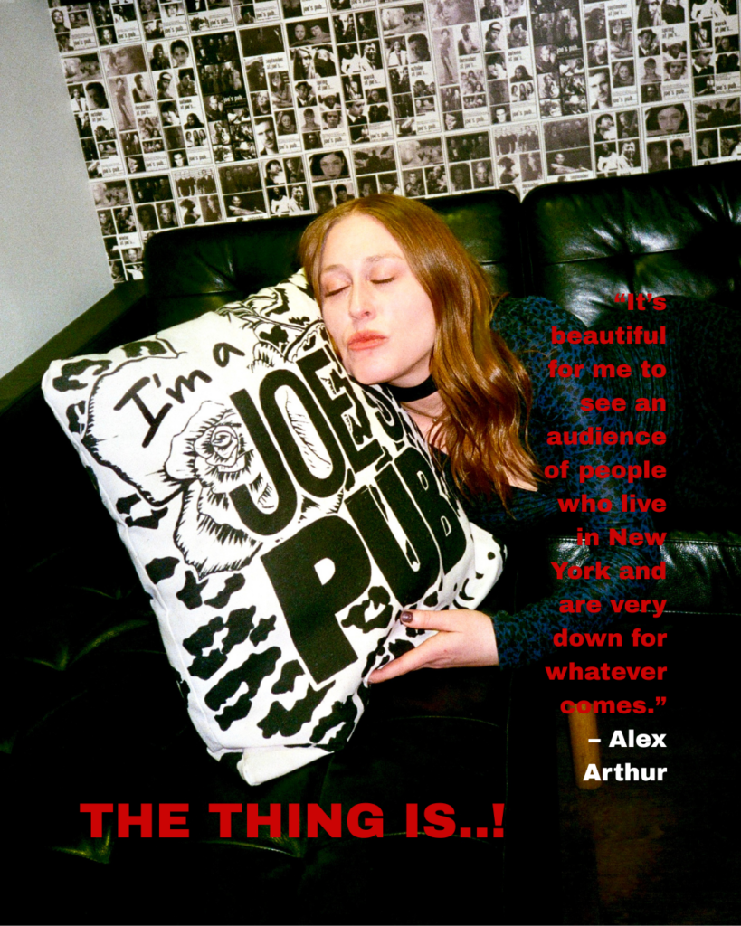Helmed by the host who “knows everyone” and funny-girl performer Alex Arthur, alongside her co-producer and presenter, Cole Spike, who was stuck on her flight from LA (thanks to the second blizzard we’ve endured this winter), The Thing Is..! took place at the duo’s dream venue – the beloved NYC staple Joe’s Pub. Sometime last year, I had attended one of the occasions just next door at the event’s home base, Jean’s, which gave Arthur and Spike their blessing and helped facilitate the expansion of the show at Joe’s.