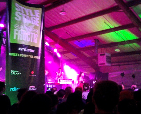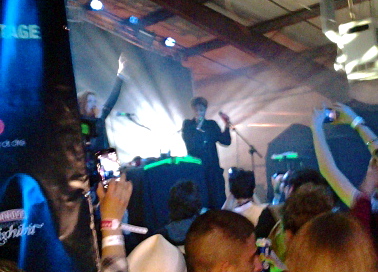 Because I spent most of my time standing in line on my phone planning the next day, I was relieved to find a mobile charging station right next to the bar. Because I appeared to be the only Android user at this party, I had no problem finding an available charger (non-conformist perk!). I grabbed my first of many free drinks for the night and chatted up with some strangers––who all turned out to be fellow Williamsburg, Brooklyn dwellers, to my non-surprise––before heading to the stage to see Toronto-based band Austra, whose dark new wave synth pop reminded me a lot of Brooklyn band Zambri with a dash of Grimes.
