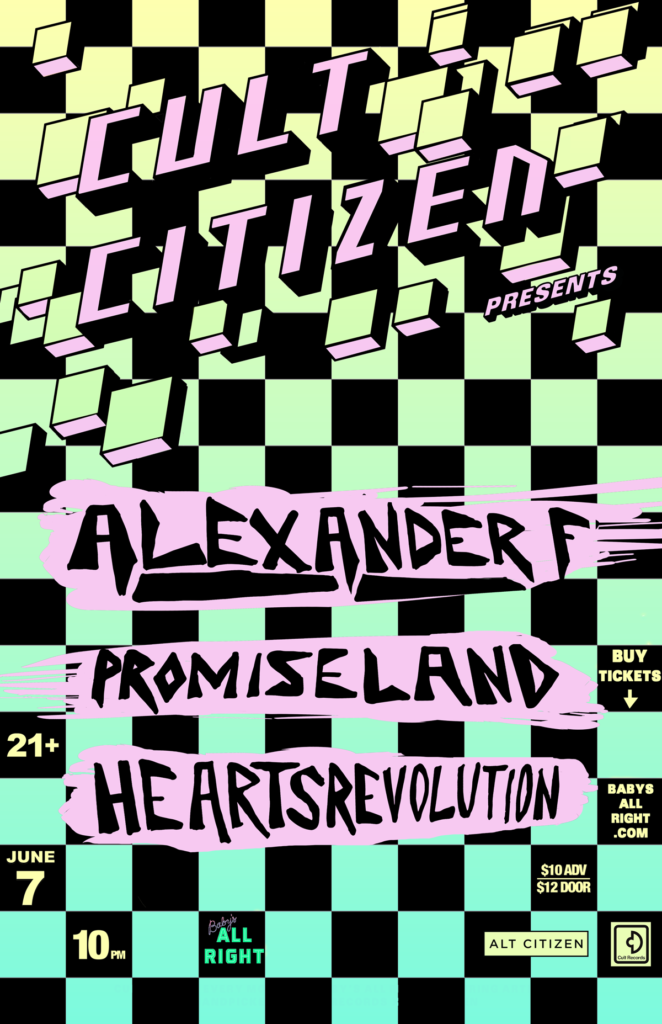 On June 7th we hosted our June Cult Citizen show at Baby’s All Right with a lineup featuring Heartsrevolution, Promiseland and Alexander F. It was one of