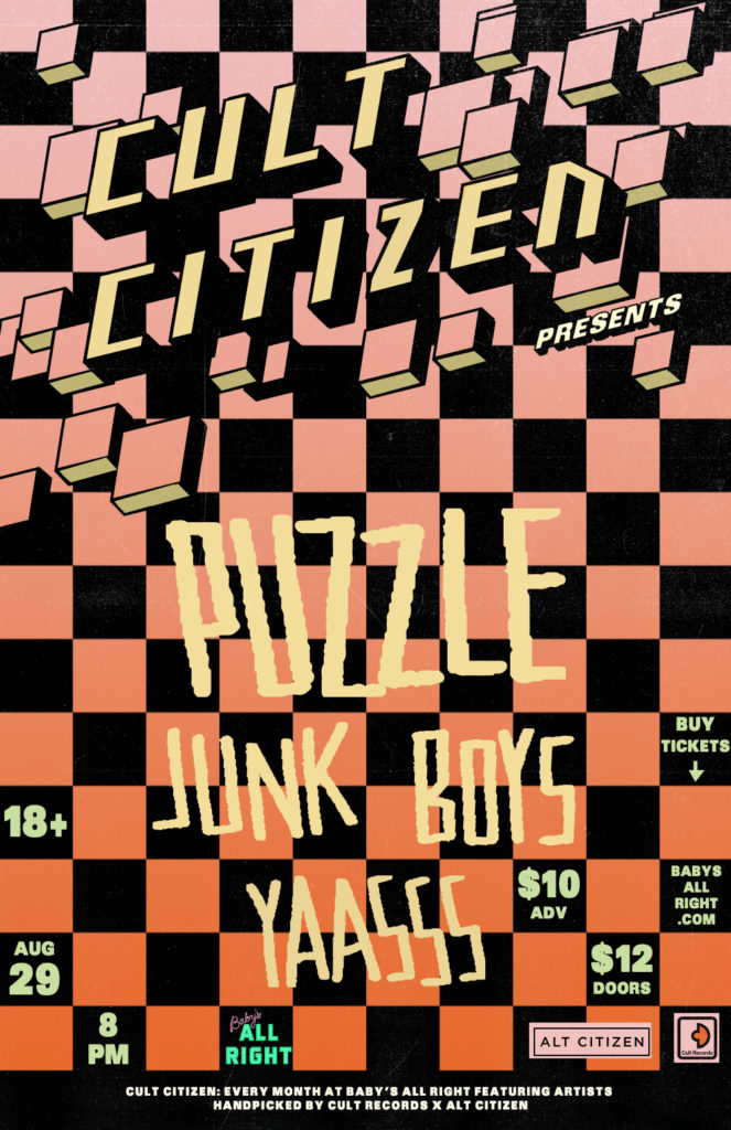 The next Cult Citizen is happening Aug 29 and features headliner Puzzle (1/2 of The Garden) with support from local favorites Junk Boys and YAASSS. This