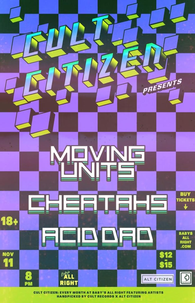 This month for Cult Citizen we present LA based dance punks Moving Units, British shoegaze Cheatahs, and local psych boys Acid Dad. Join us on