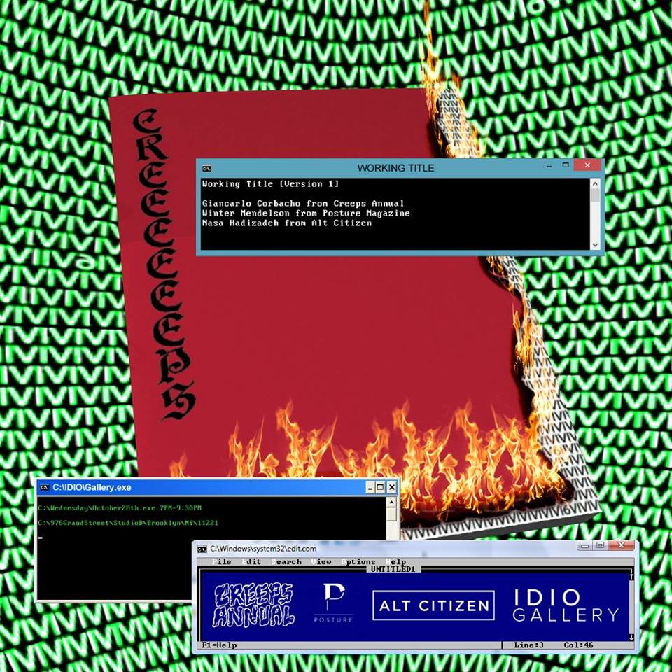 Creeps Annual presents their first edition of WORKING TITLE at IDIO gallery on October 28 from 7-9:30PM. This series will be monthly meet up that fosters