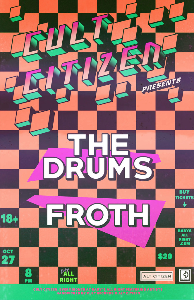 Cult Citizen presents the summer inspired garage indie-pop jams of The Drums and Froth tomorrow night at Baby’s All Right. See you on the dance floor!