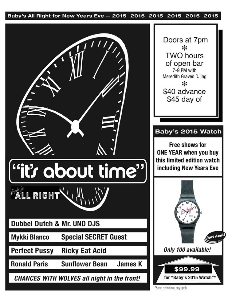 Baby’s All Right has a stellar lineup squared away for its New Year’s Eve show “It’s About Time,” including appearances by Perfect Pussy, Ricky Eat
