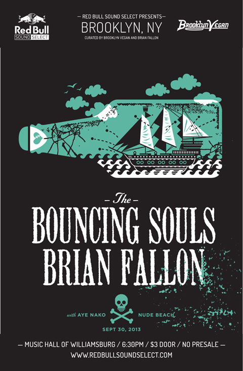 Bouncing Souls, Brian Fallon, Aye Nako, Nude Beach @ Music Hall of Williamsburg 6:30pm ($3) Yes this show will cost you all of $3. No,