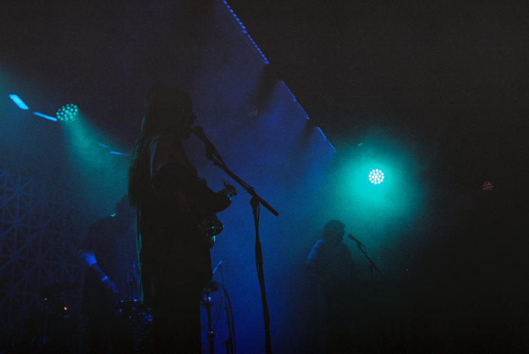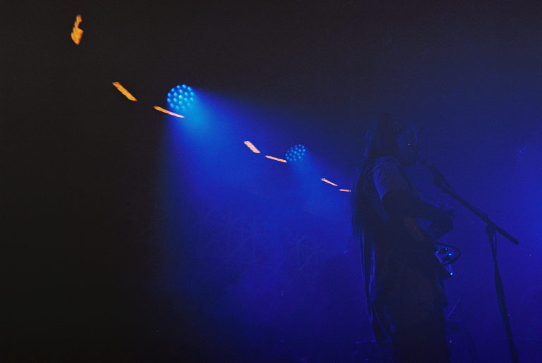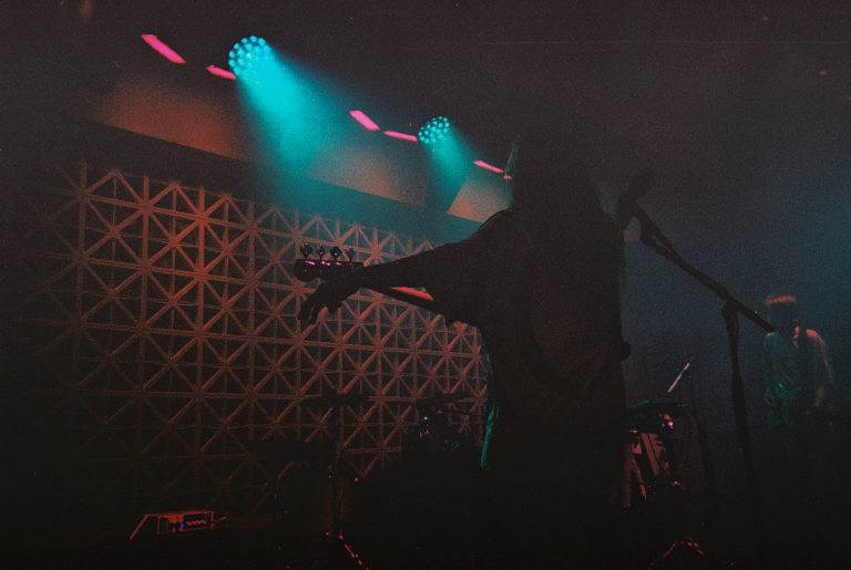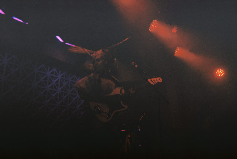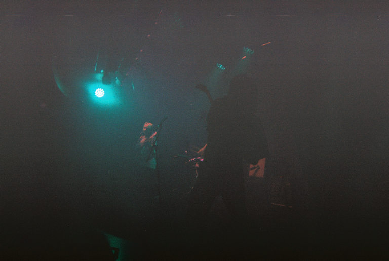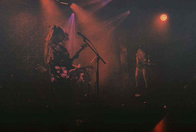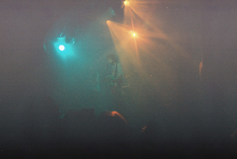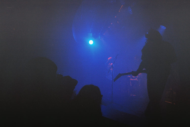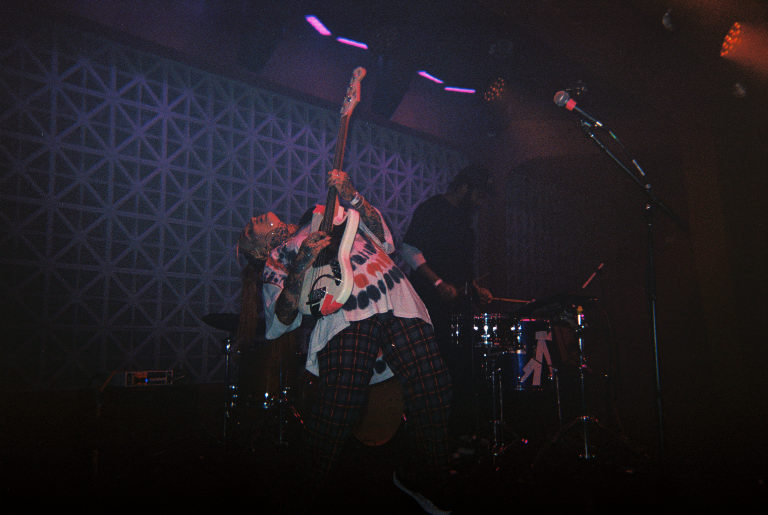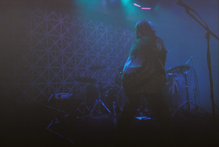 Armed with nothing but a Fujifilm disposable in a very dark room, I watched as Emily Kempf, covered in body gems on top of her tattoos, made it all look so ridiculously easy. Jason Balla across the stage countered Emily’s calmer, subtler but still raucous energy by bouncing all over with his bright green guitar (to match the deluxe LP I’ve been staring at so longingly all these months), and drummer Eric McGrady stood stoically at his half kit. It was all pretty elated, bathed in colorful low light and a foggy, packed room.